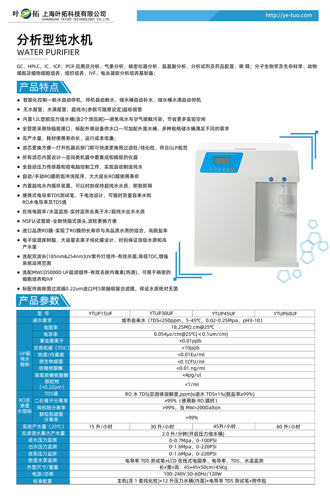 上海葉拓 YTUP45SUF 分析型純水機
