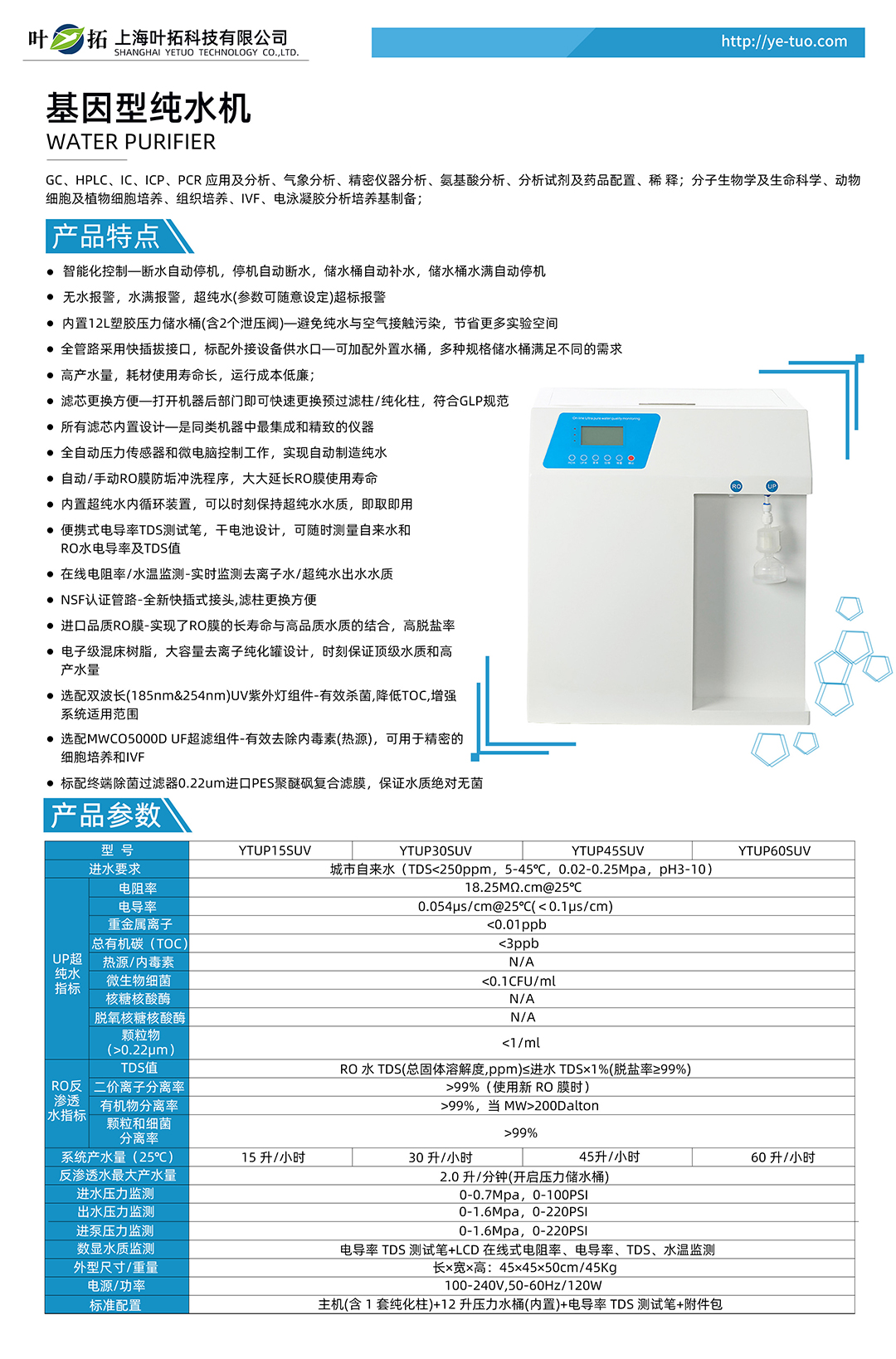 上海葉拓 YTUP60SUV 基因型純水機