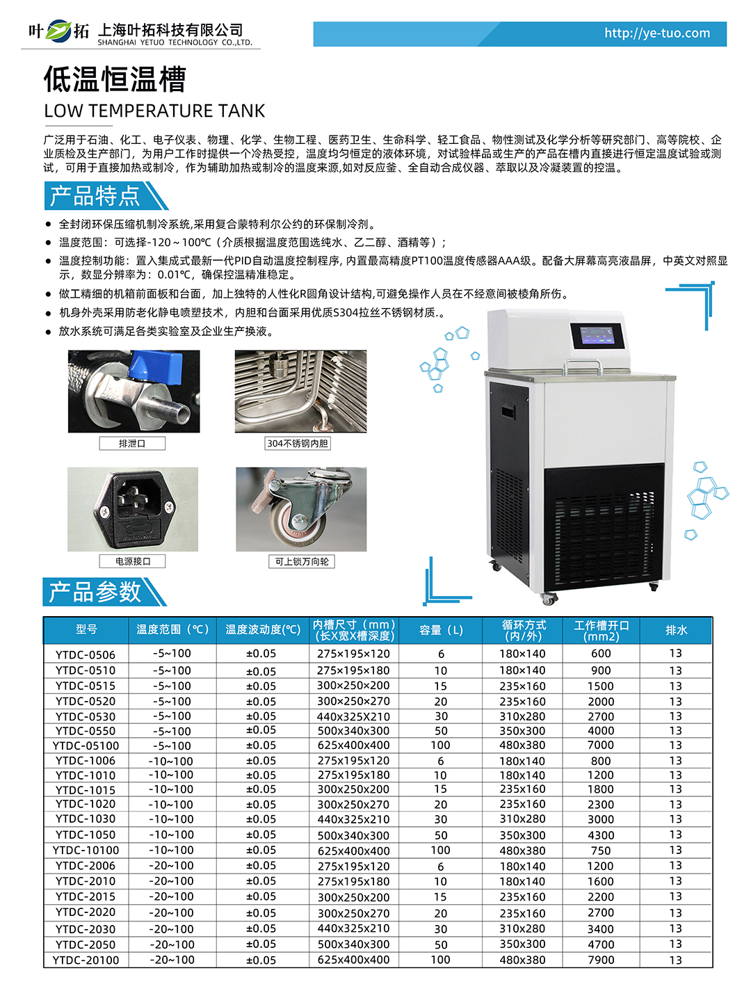 DC系列低溫恒溫槽采用,內膽整體采用SUS304不銹鋼,外殼選用優質冷扎鋼板加工成形,并同時采用靜電噴塑工藝從而提高了防腐效應, 智能化溫度控制、溫度傳感器Pt100 鉑電阻。加熱系統為一根高效能U形電熱管組成。制冷系統為全高效抗干擾壓縮機,蒸發器等組成。 恒溫控制部分采用國際上先進的抗積分飽和PID控制系統,防止升溫過程溫沖現象,從而提高控制精度。