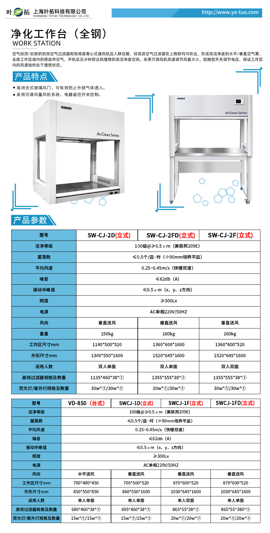 葉拓SW-CJ系列全鋼超凈工作臺產品特點:
