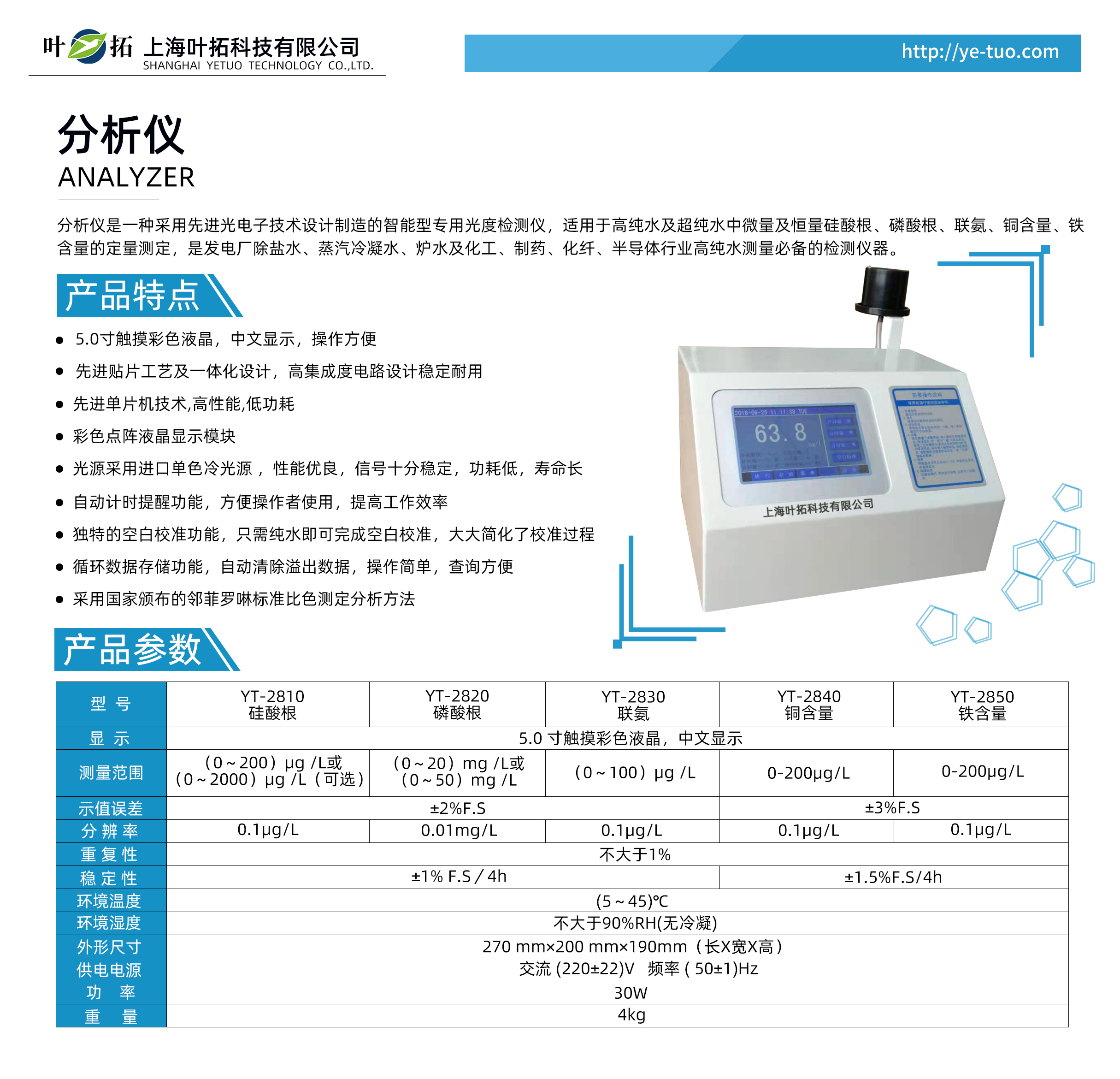 葉拓YT系列分析儀產品特點: