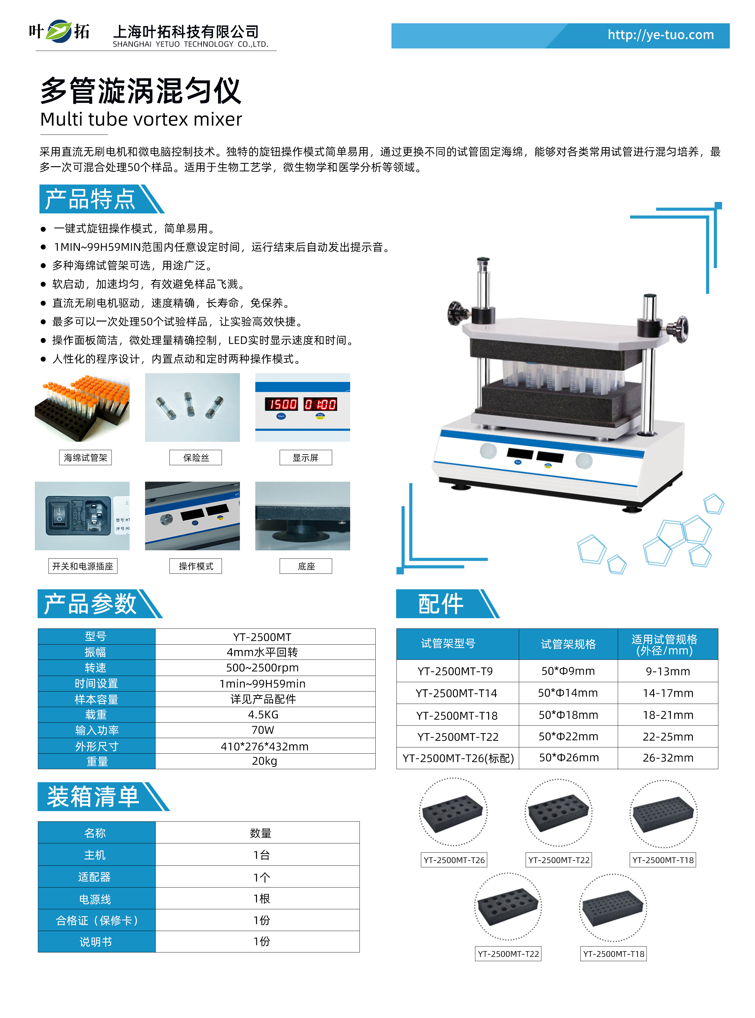上海葉拓 YT-2500MT 多管旋渦混勻儀